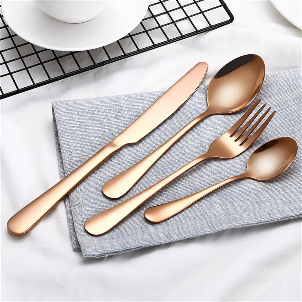 Rose gold set rose gold forks spoons knives plates bowls cups napkins tablecovers straws tableware 146 cutlery serving party set.